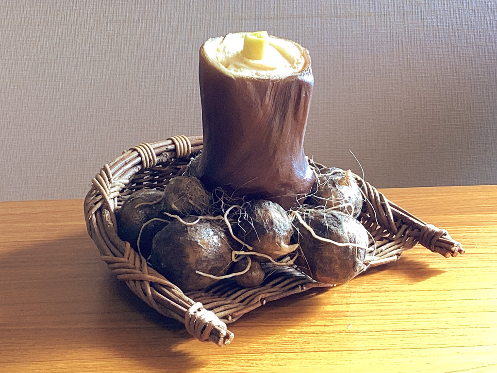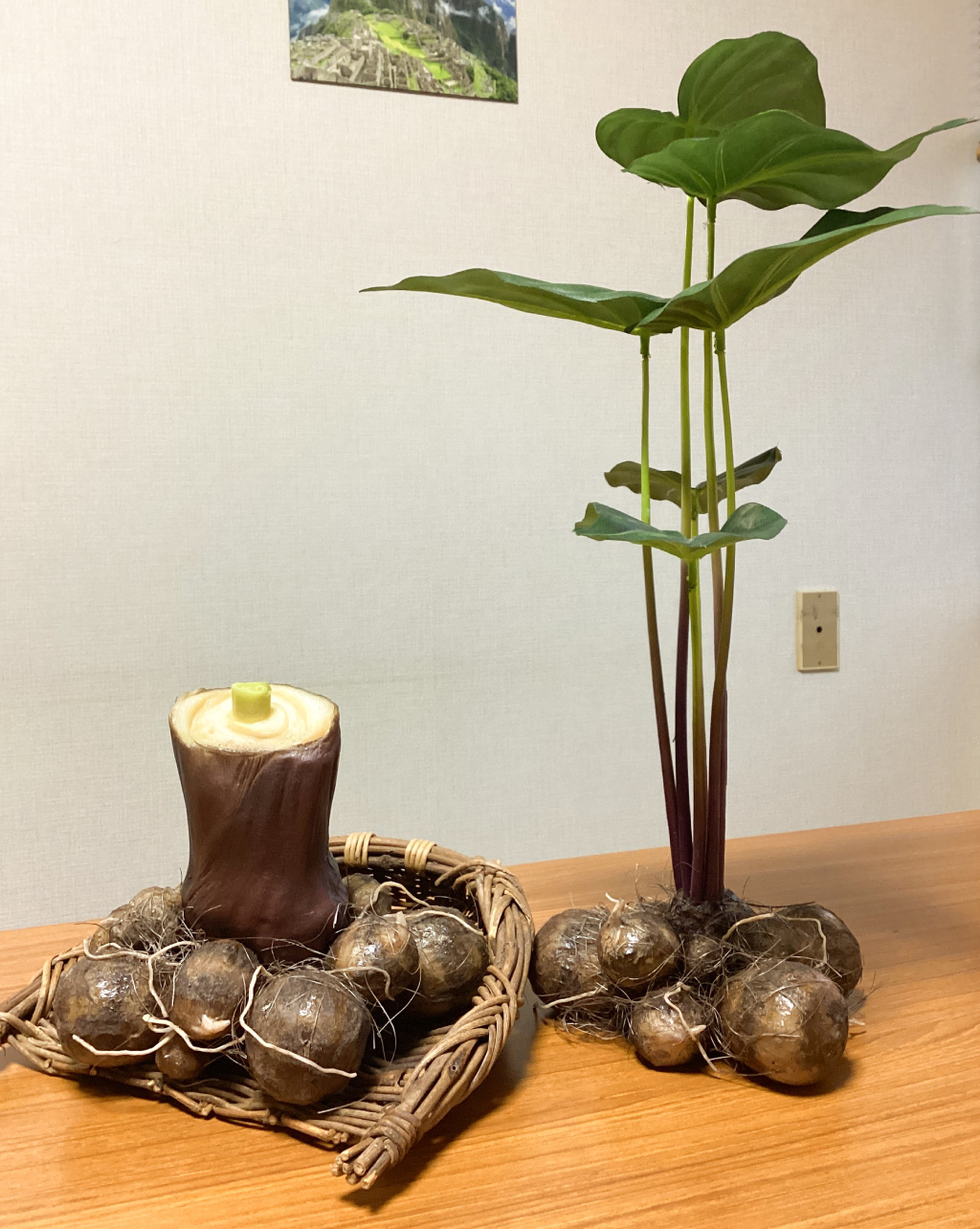 そのブランドサトイモをPRするにあたっては、常に現物があるわけではないため、現物がない時期でのPR活動への対応のとして食品サンプル模型の活用を考え、作製していただきました。