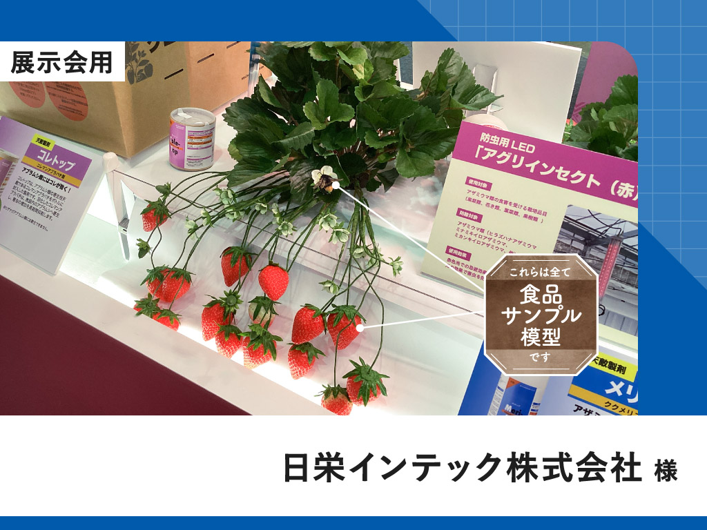 イチゴ栽培状況や青果物の鮮度の違った状態を食品サンプル模型で再現
